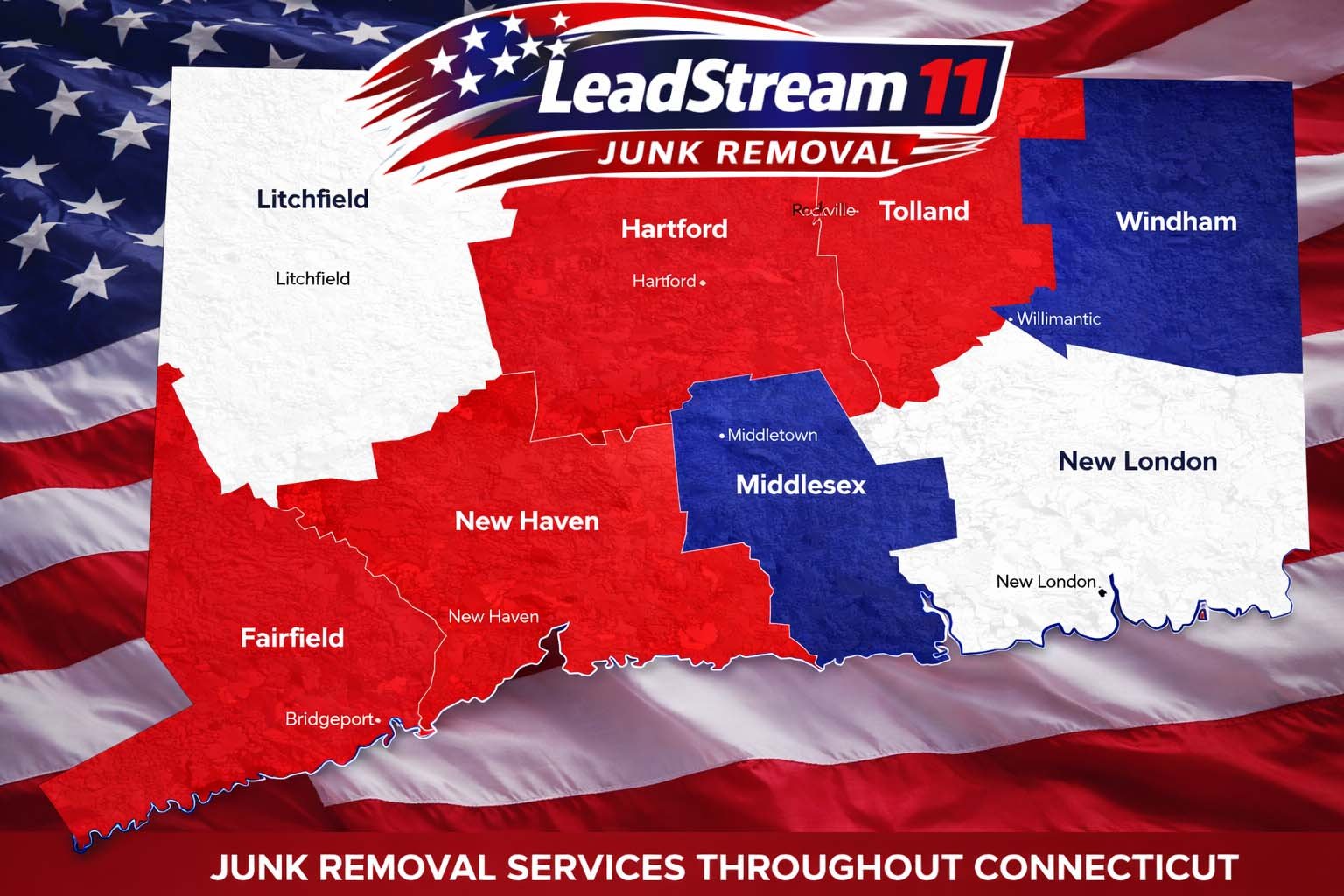 Fairfield County (Gold Coast), Hartford (Capitol Region), New Haven, Litchfield Hills, Southeastern/Mystic, Bridgeport, Stamford, Waterbury, Danbury, Norwalk, Greenwich, West Hartford,